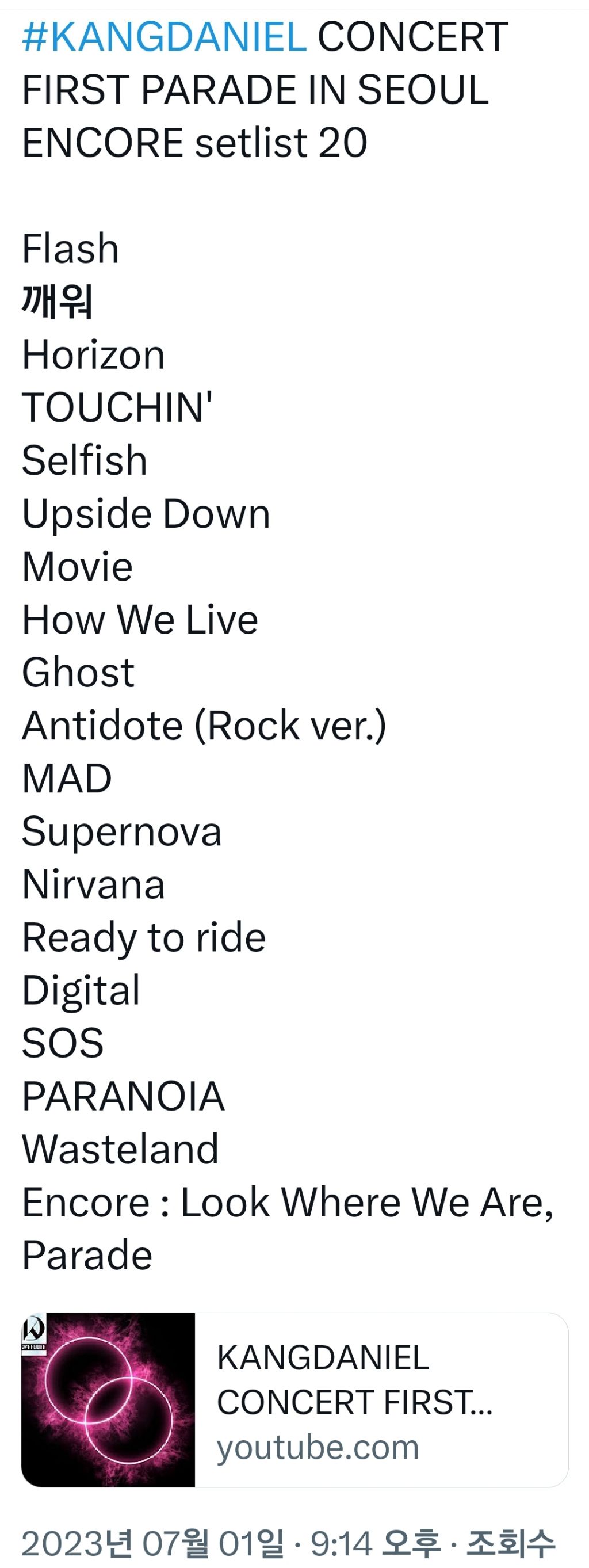 ๐ฐ๐ท์์ฝ1)์์ธDay1โถ๏ธ์์2๋ถ (Nirvana~ Parade) 230701