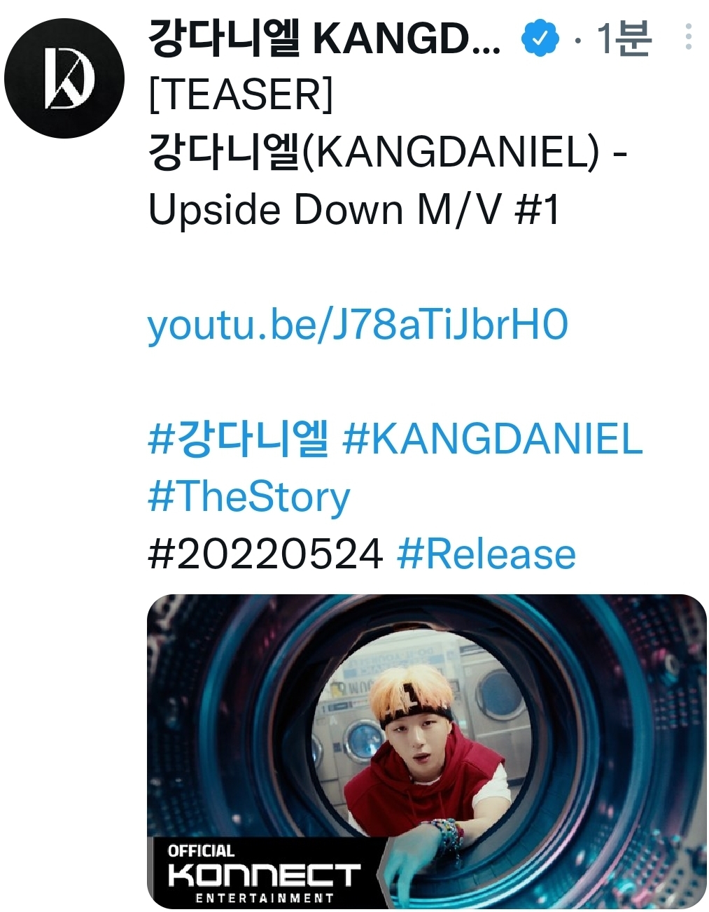 'Upside Down' 티저는 15초 분량의 짧은 영상이지만 강한 인상을 남기고 있다. 금발의 강다니엘이 비보잉 퍼포먼스를 펼치는 장면으로 시선을 사로잡았다. 곡명과 절묘하게 통하는 '다시 바꿔 놔야겠어'라는 가사도 흥미롭다.