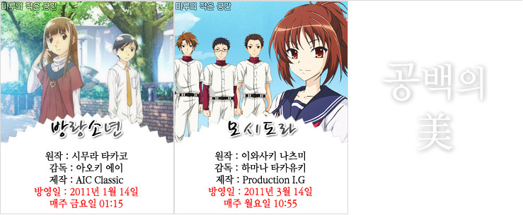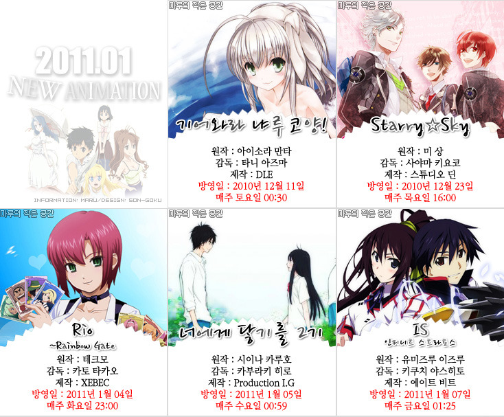 - 2010년 12월 11일:2011년 1월 신작애니 목록 리뉴얼