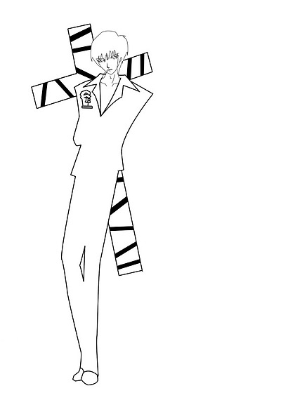 뒤에 퍼니셔......[일명 십자가 총.] 천에 쌓여진것인데.... 주름은 채색하면서 넣을것이기에....