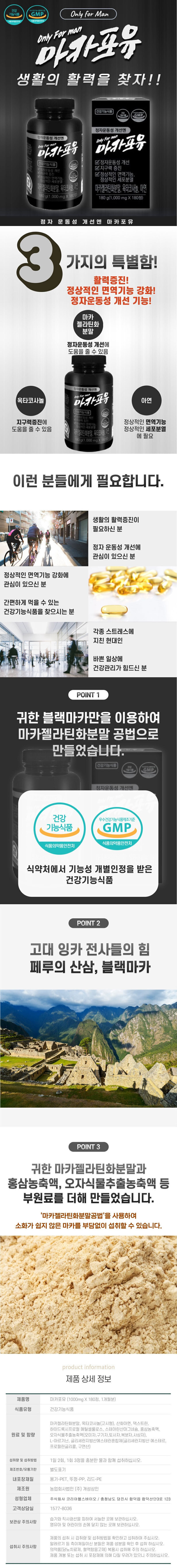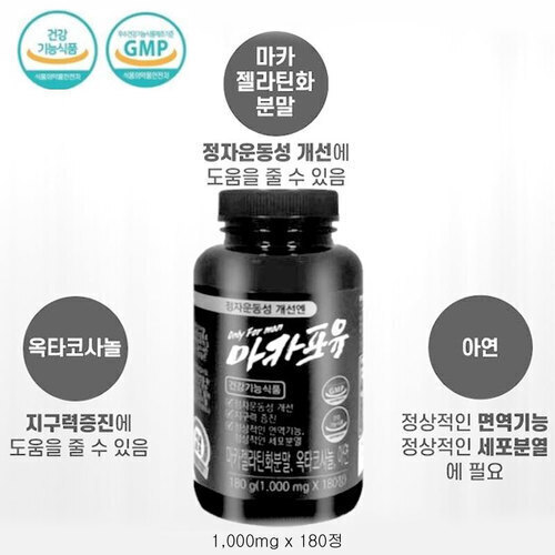 정자운동개선에 마카포유1000mg x 180정 2박스구매시 한박스 더드림니다 마카포유로 생활의활력을 찾자!! 1인 3개월분으로하여