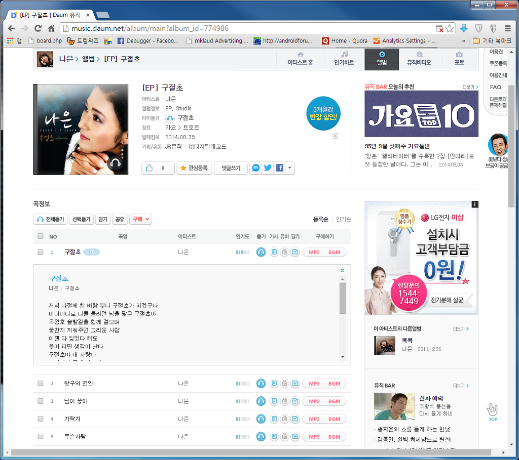 가수 나은의 구절초 많이 사랑해주세요. ♡♡♡♡♡♡♡