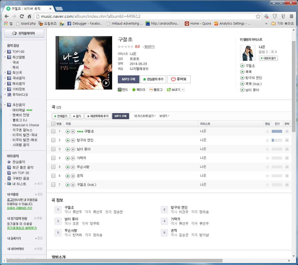 이번에 가수 나은님께서 발매하신 앨범이 다음뮤직, 네이버 뮤직, 벅스뮤직, 멜론에 등록되어 알려드립니다.