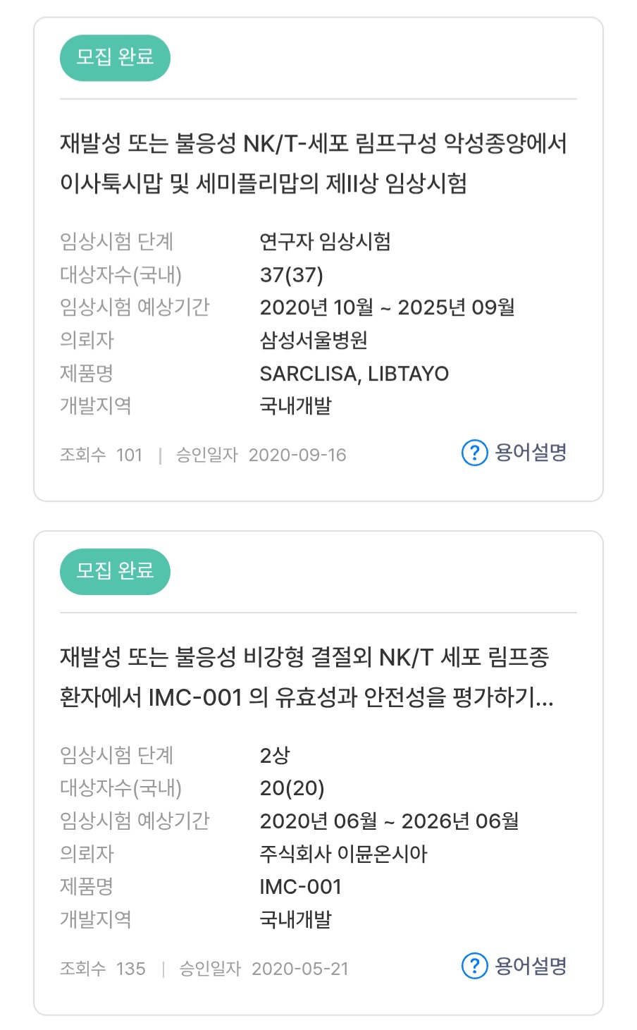 임상시험 관련해서 질문드립니다 작성자황짜이혁|작성시간25.12.22|조회수330 목록 댓글 1 글자크기 작게가 글자크기 크게가 안녕하세요 첨부된 사진처럼 모집완료라고 나오는 임상시험들은 주최병원이나 실시기관병원에 연락을해도 참여하기엔 이미 늦은건가요 추가로 참여할수있는 방법이 따로 없을까요? 다음검색 현재 게시글 추가 기능 열기 북마크 공유하기 신고 센터로 신고 댓글 댓글 1 댓글쓰기 답글쓰기 댓글 리스트 작성자코리 | 작성시간 25.12.23 안녕하세요 ? 도움이 될지는 모르지만, 제 신랑도 임상을 했었는데 (여성모,약은 달라요) 해당 병원 교수님 임상에 참여 한 거고 제 친정엄마도 임상을 했었는데 (서울대) 역시 담당 교수님의 임상에 참가 한거였어요. 댓글 전체보기