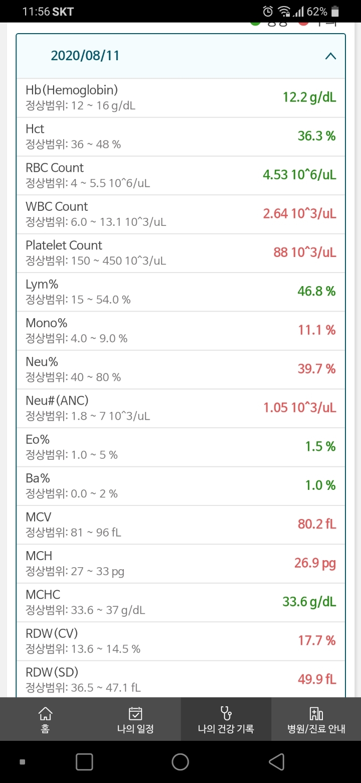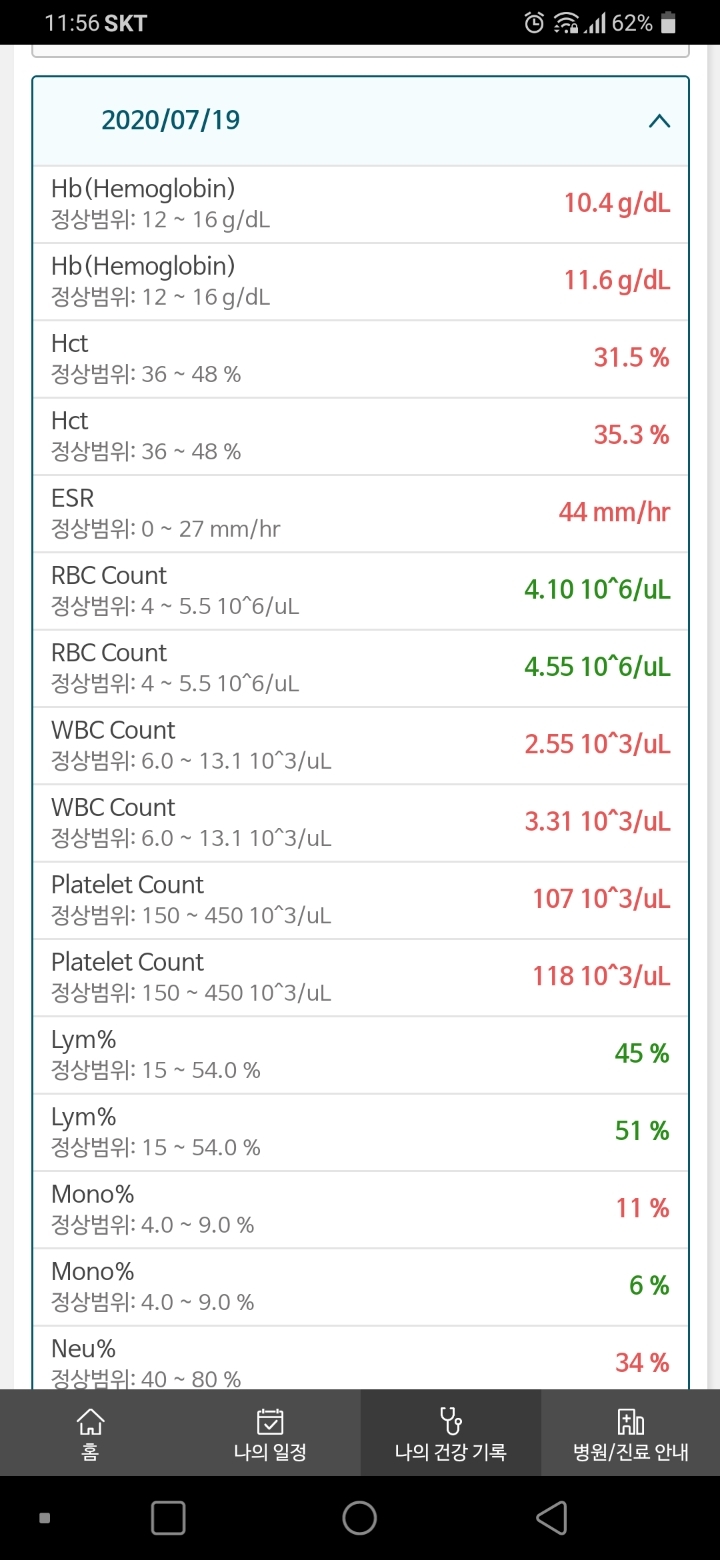 이날 피검으로 조금씩 호전되는양상이다.