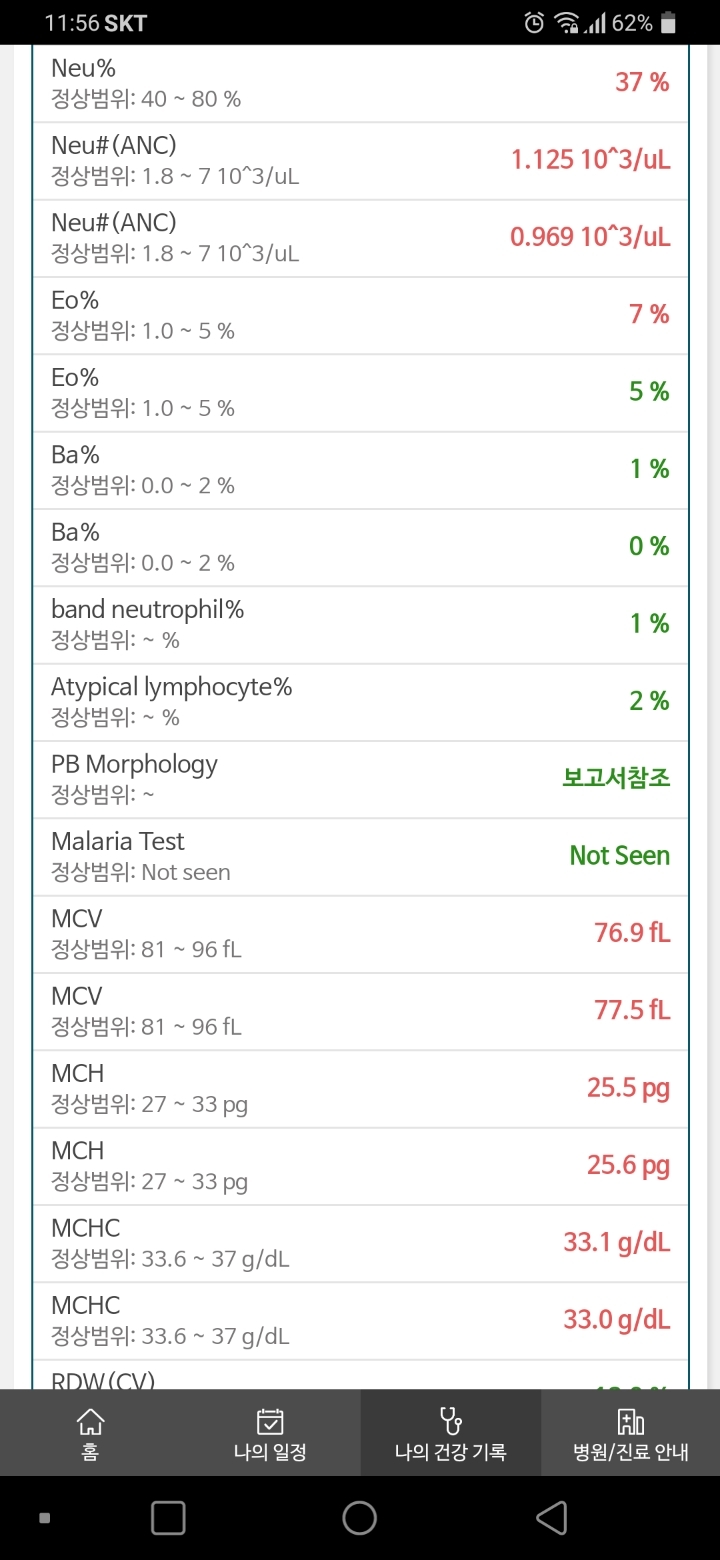 피검사 내역 첨부해요..병원을 옮겨서