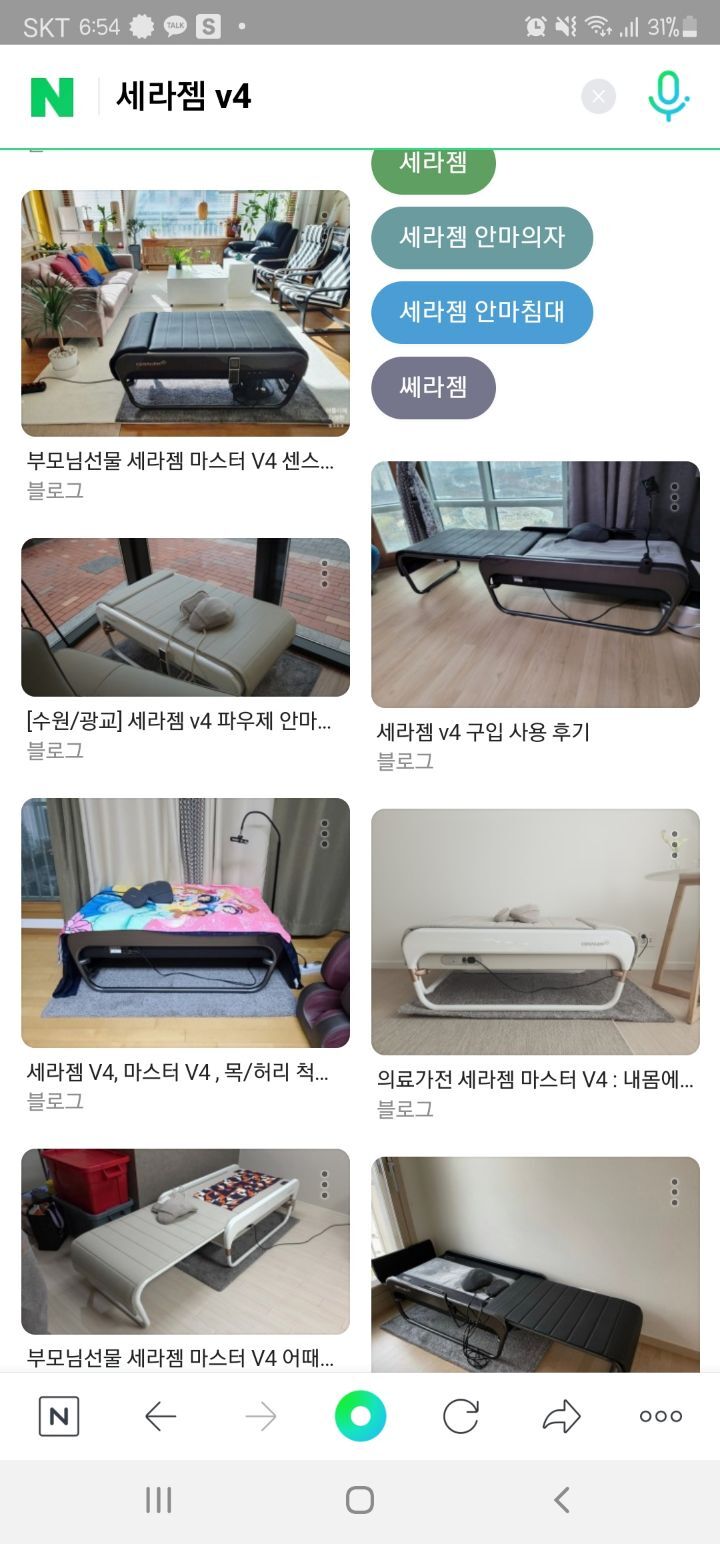 작성자힘내자내서(DLBCL) 작성시간 21.01.20 세라젬 마스터 V4 요즘 모델 말고, 저는 그 전모델 V3 사용중입니다. 확실히 누워서 받으니 잠이 솔솔옵니다. 혹시 몰라 발병후 저희 신랑은 사용 안하고 있긴한데 등근육 푸는데는 정말 좋은거 같아요.