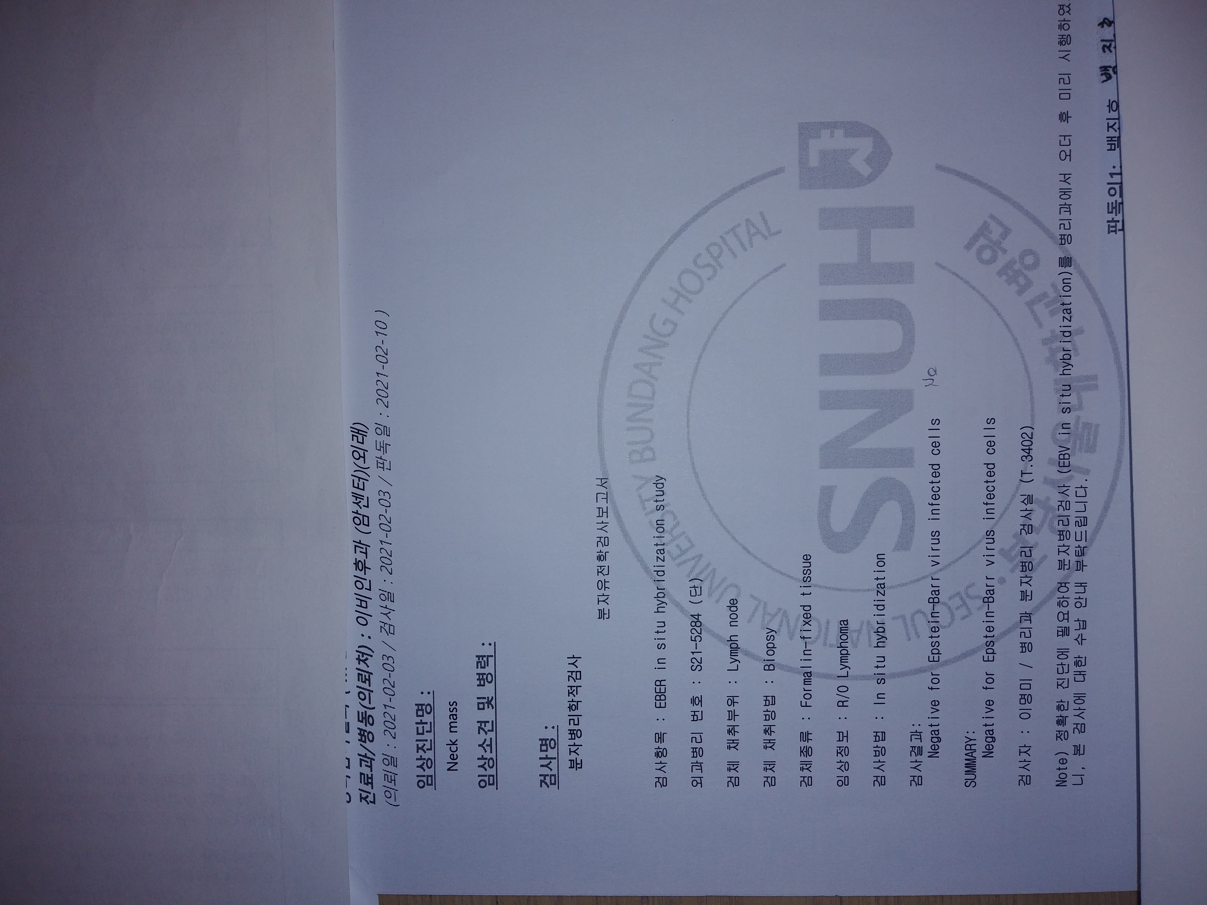 EBV 바이러스 : 음성