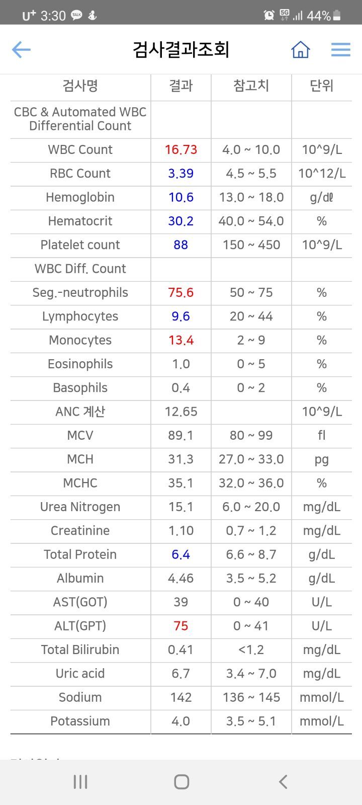 아버지 피검수치인데 백혈구수치가높다하네요 작성자솔이네집(b세포)|작성시간21.05.03|조회수919 목록 댓글 0 글자크기 작게가 글자크기 크게가 오늘은 호흡기내과진료보고오셧는데 백혈구 호중구수치가높다고 일단 지켜보고 12일 입원날에 와서보자고햇다는데 많이 높은건가요?의사샘말로는 높아도안좋고 낮아도안좋다는데ㅜㅜ 별일은 없겟죠?ㅠ 다음검색 현재 게시글 추가 기능 열기 북마크 신고 센터로 신고 댓글 댓글 0 댓글쓰기 답글쓰기 댓글 리스트