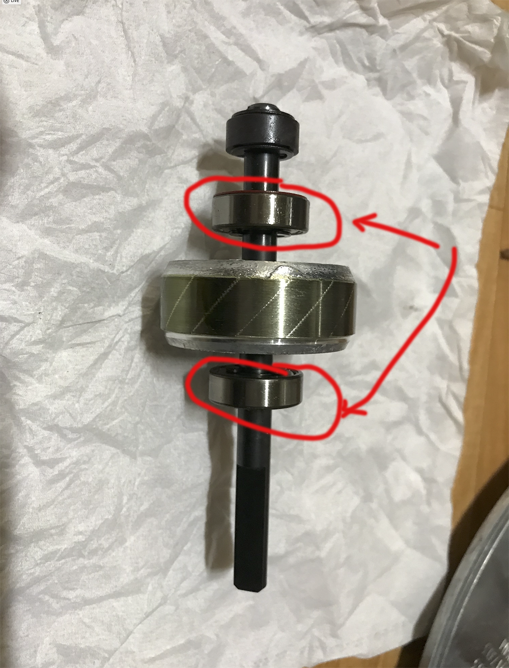 분해해서 열어보았습니다 살펴보니 608ZZ 베어링 2개가 들어가는데 그중 한개가 열때문에 마모