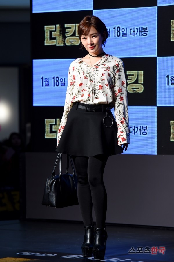 배우 민송아가 16일 오후 서울 영등포구 영등포 타임스퀘어에서 열린 영화 ‘더 킹’ VIP 시사회에 참석했다.