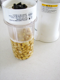 믹서기에 삶아낸 물과 콩을 넣고 곱게 갈아줍니다...