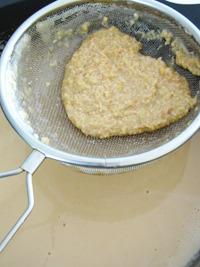 갈아논 콩을 체망에 받쳐 물2컵을 조금씩 부어가면서곱게 내려줍니다...