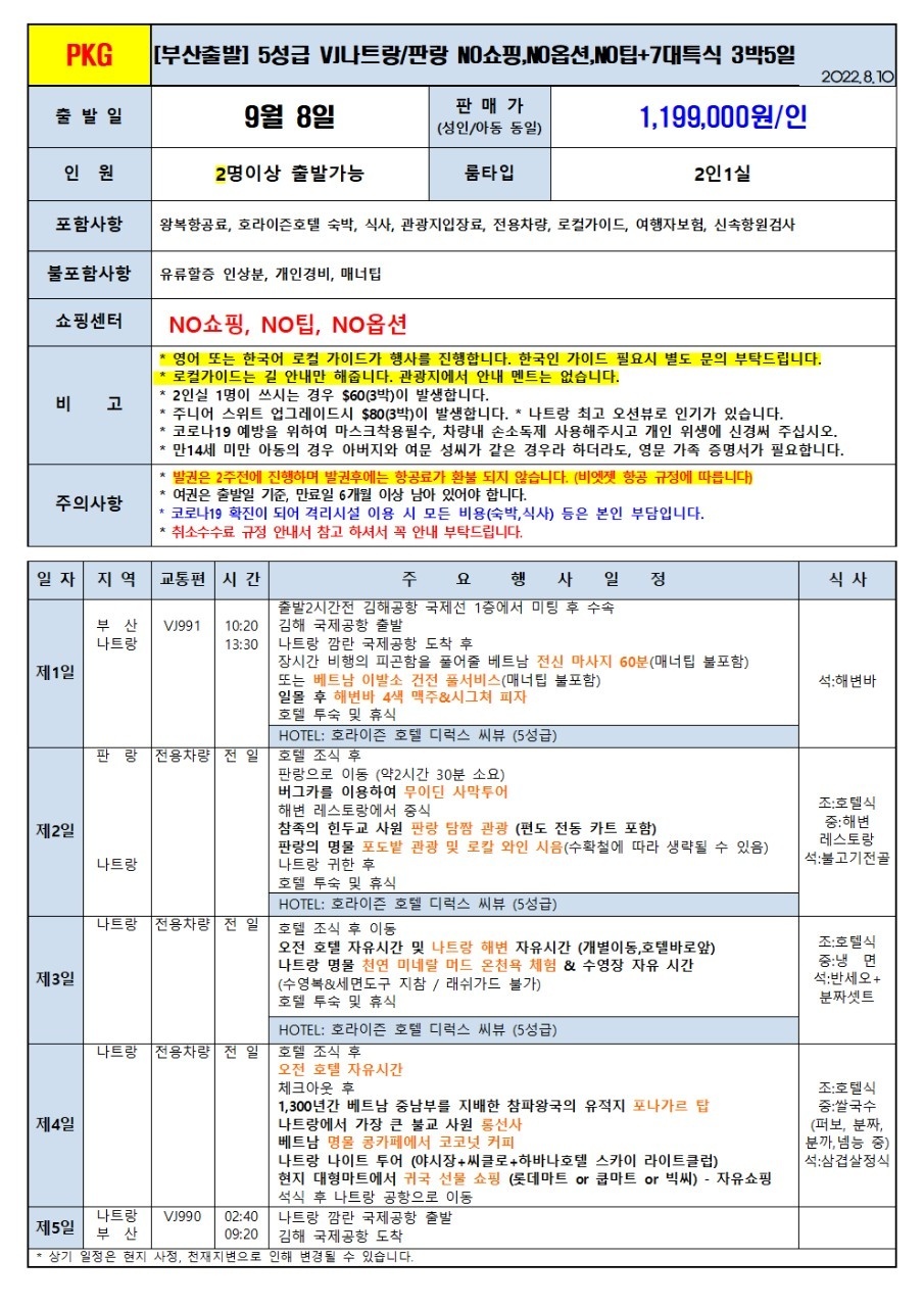 ✔부산출발 🔸️5성급 VJ 나트랑/판랑+머드온천 단독 패키지 3박5일🔸️NO팁, NO옵션, NO쇼핑 - 2명부터 단독 행사