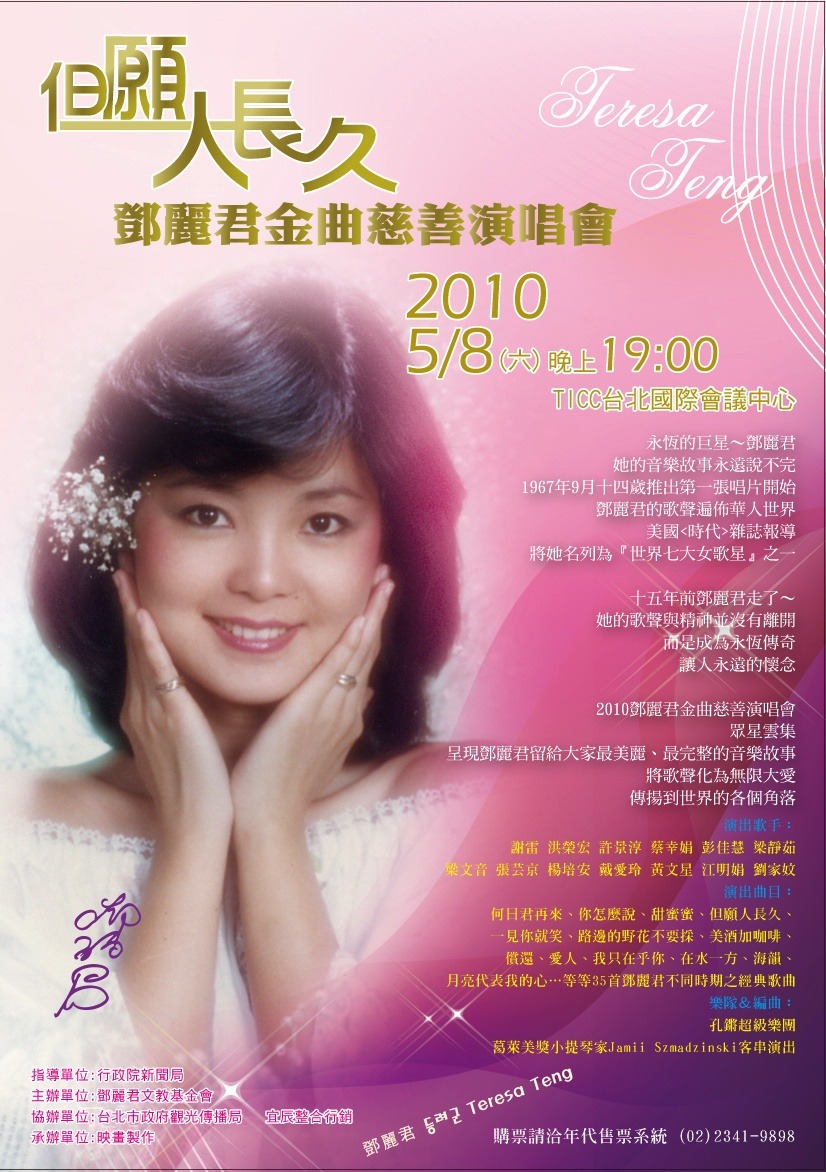 작성자HuckFinn 작성시간 10.04.09 여기서 15주년 이란 "내사랑 등려군"이 저 세상으로 간지 15년이 되었다는.... 5월 8일 이죠?