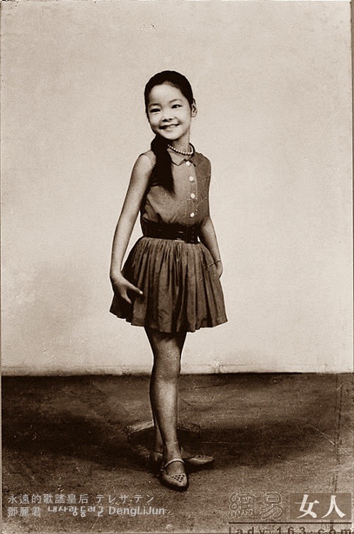 邓丽君在家中排行第四,由于在她之前是三个哥哥,邓丽君的出世使其双亲分外欣喜,她更是受母亲的宠爱,无论走到哪里,