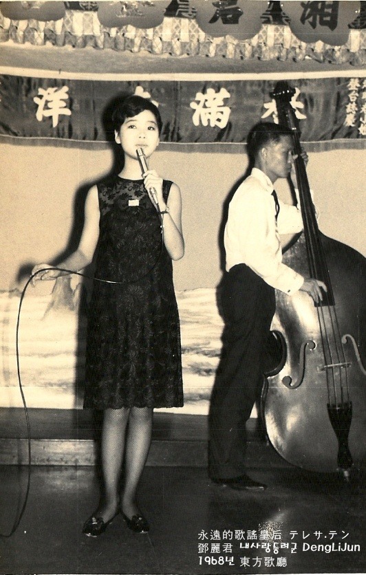 1969년에 찍은 사진이다. 연예계에서 갑자기 유명해진 뒤 등려군은 대북의 여러 음악홀의 인기 가수가 되었다.