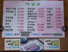 두부전골.묵은지전골.제육볶음.청국장.해물순두
