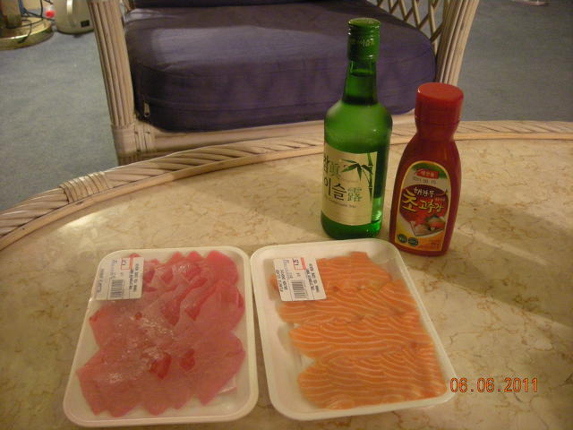 캘리포니아마트 가서 내일 떠나는 게 되는 팀과 한 잔 할 참치회랑 소주랑 맥주.. 사갑니다.
