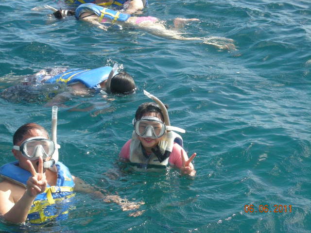 스노쿨링 중인 현수와 현수아버님이십니다.