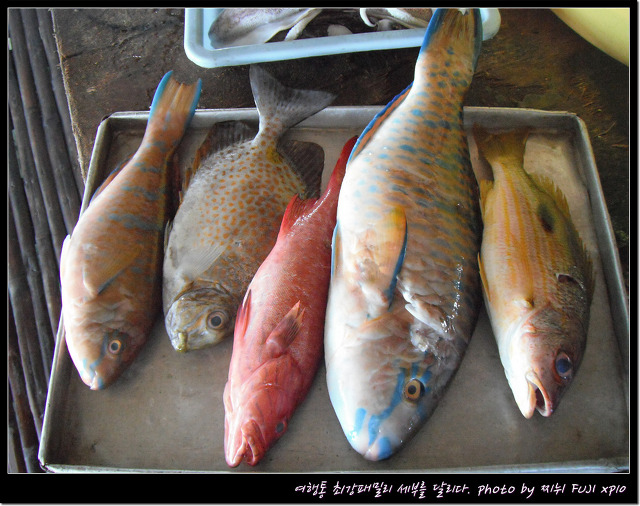요 생선들중에 젤 오른쪽에 있는 건 먹을만한데... 나머지는 색상때문에... 특히나 파란색 들어간 생선은... 그닥 안 땡기더라는...