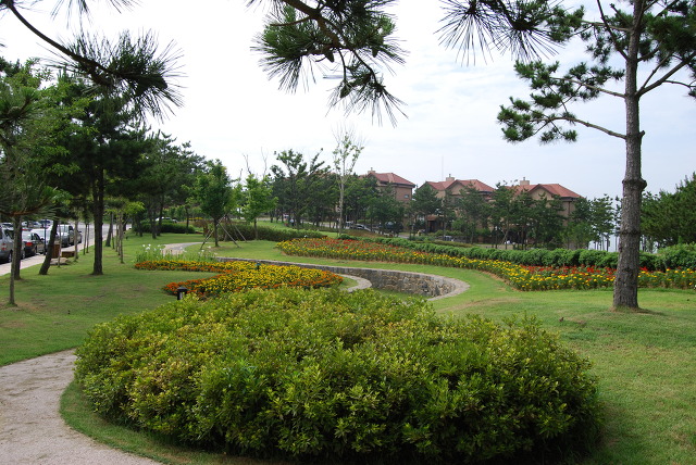 엘도라도 중앙에 있는 블루밍가든입니다. 규모가 작지만 나름대로 조그만 연못에 듈립, 해송들이 심어져 있습니다.