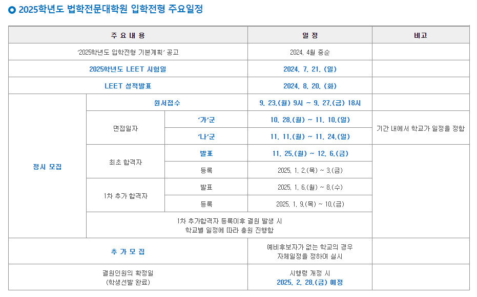 2025학년도 로스쿨 입학전형 주요일정 발표 작성자박도현|작성시간24.03.22|조회수14,536 목록 댓글 0 글자크기 작게가 글자크기 크게가 추석 연휴(9/14~18) 다음주가 원서접수로 결정되었습니다. 추석 연휴에 굉장히 바빠지겠네요. ^^ 다음검색 현재 게시글 추가 기능 열기 북마크 공유하기 신고 센터로 신고 댓글 댓글 0 댓글쓰기 답글쓰기 댓글 리스트