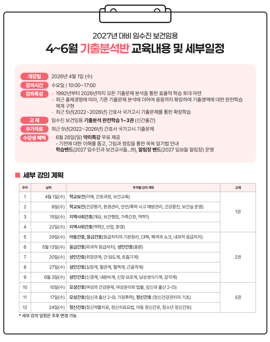 4월 1일 (수) 오전 10시 개강하는 기출분석반 강의를 안내 드립니다.