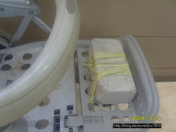다 보니 앞부분이 들린단다. 그래서 고안해 낸 것이 벽돌 한장을 올려 놓았다는 이야기