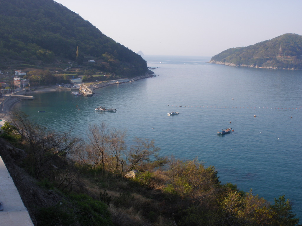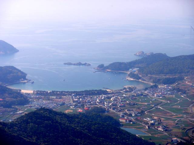 저 아래 마을이 있는 큰 섬 옆으로 작은 섬들이 점점이 떠서 한 폭의 수채화로 펼쳐지는 것을 보면서,