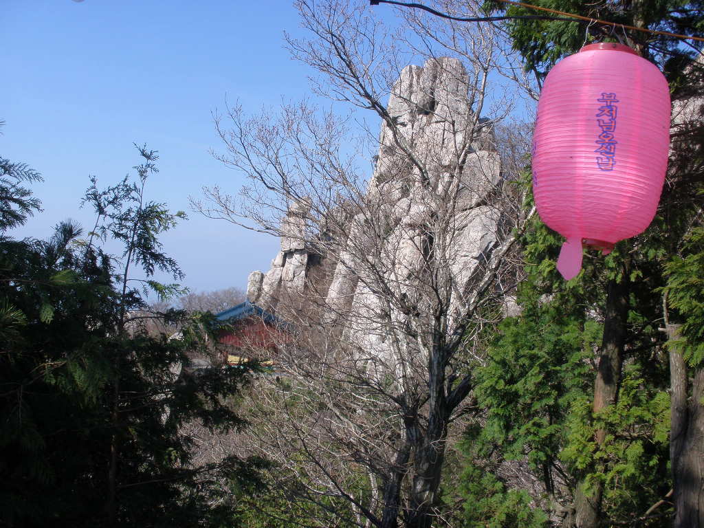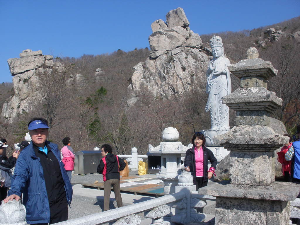 건너편에 거대한 상사바위가 보입니다. 아래에는 3층 석탑 , 발치에는 금산 제1의 명소 쌍홍문이 있습니다.