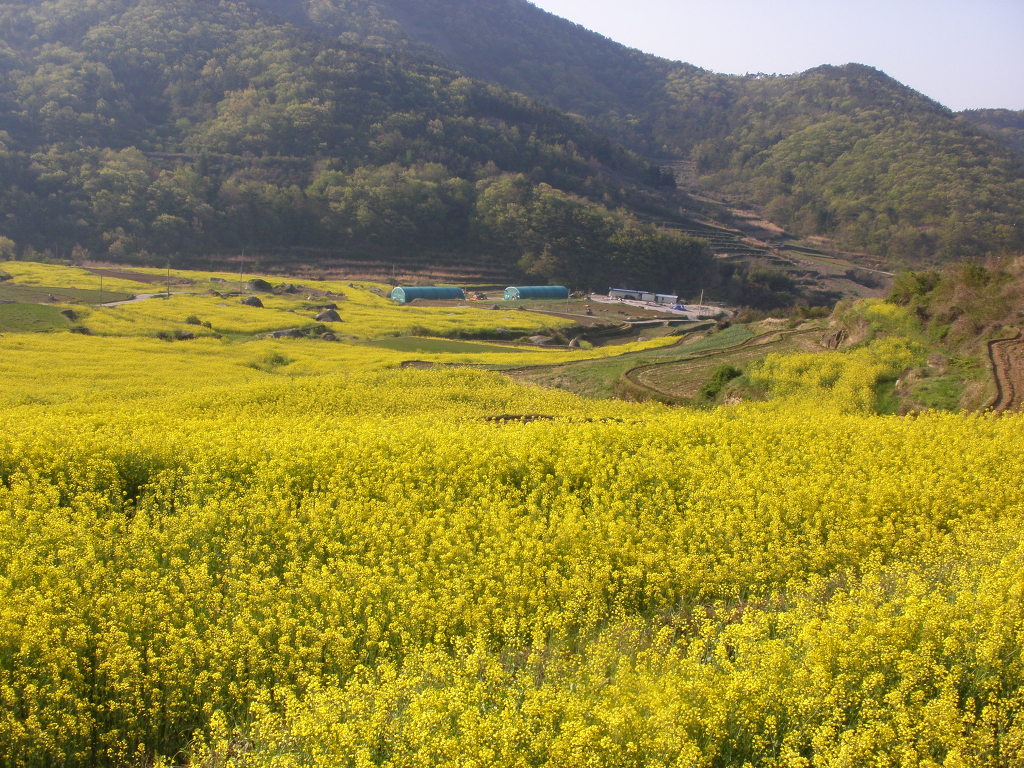 언덕 밑으로 내려다보이는 골짜기는 온통 노란 유채꽃,