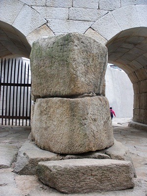 성벽을 끼고 올라가다가 한 눈에 보아도 돌의 크기와 쌓아 올린 모양이 확연히 다른 성벽 한 곳 앞에 멈춰 섰습니다.