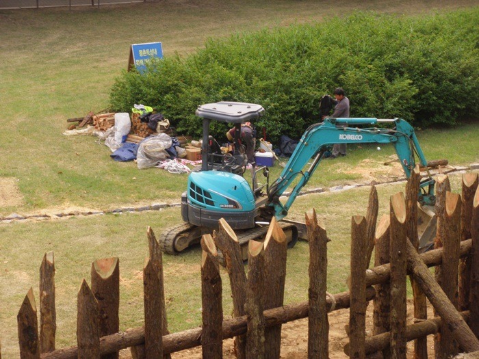 지난번에 갖다놓은 목재와 섞어서 최대한 자연스럽게 목책을 복원한 것입니다. 참 우여곡절이 많았습니다. -