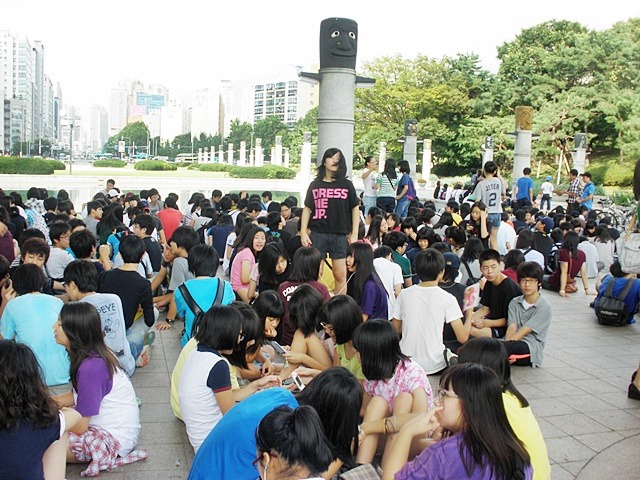 내가 약속했던 조각작품 해설은 팥빙수 먹은 다음에 하기로 하고 학생들과 함께 롯데리아로 향했습니다.