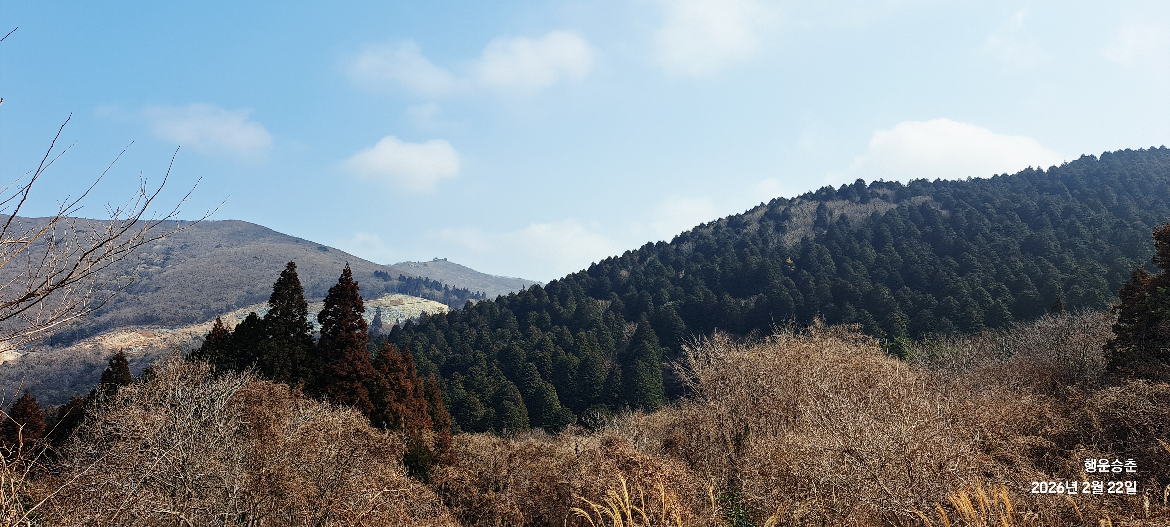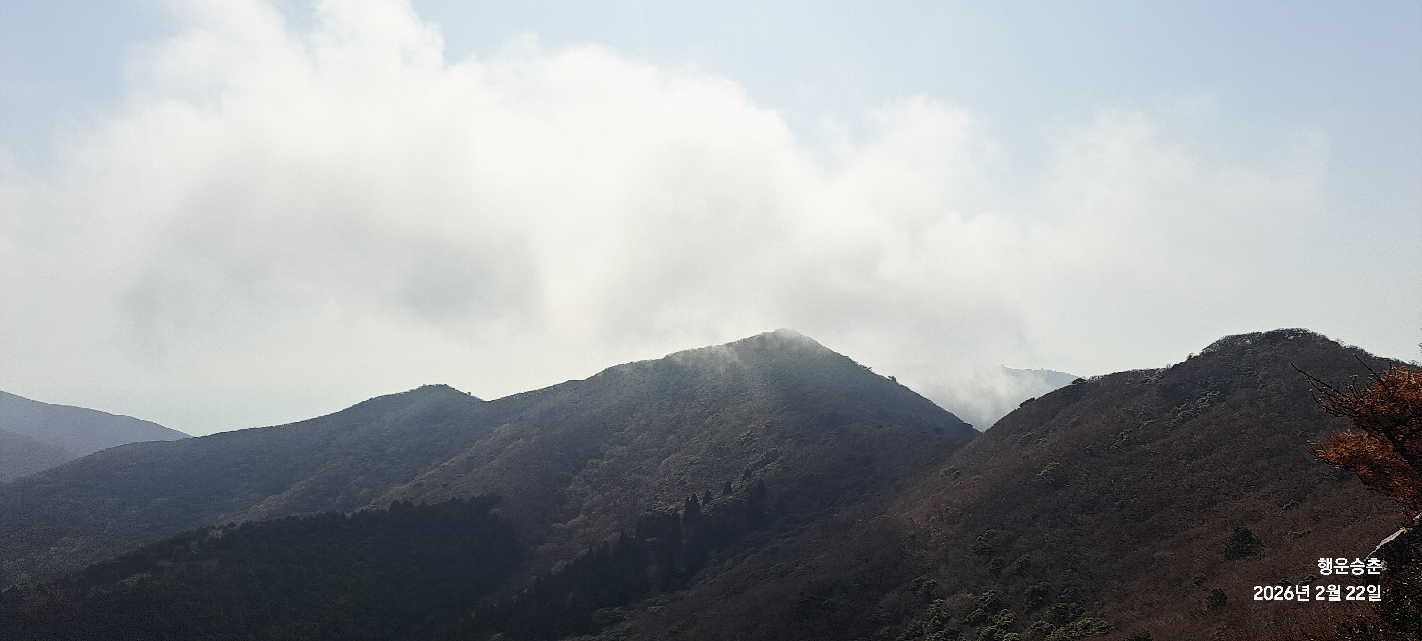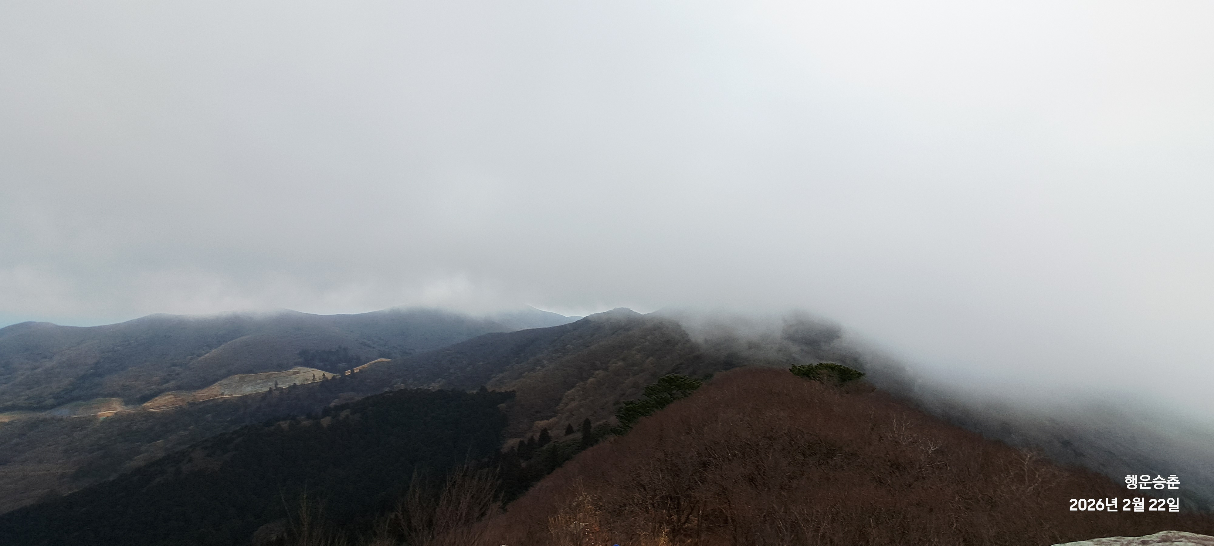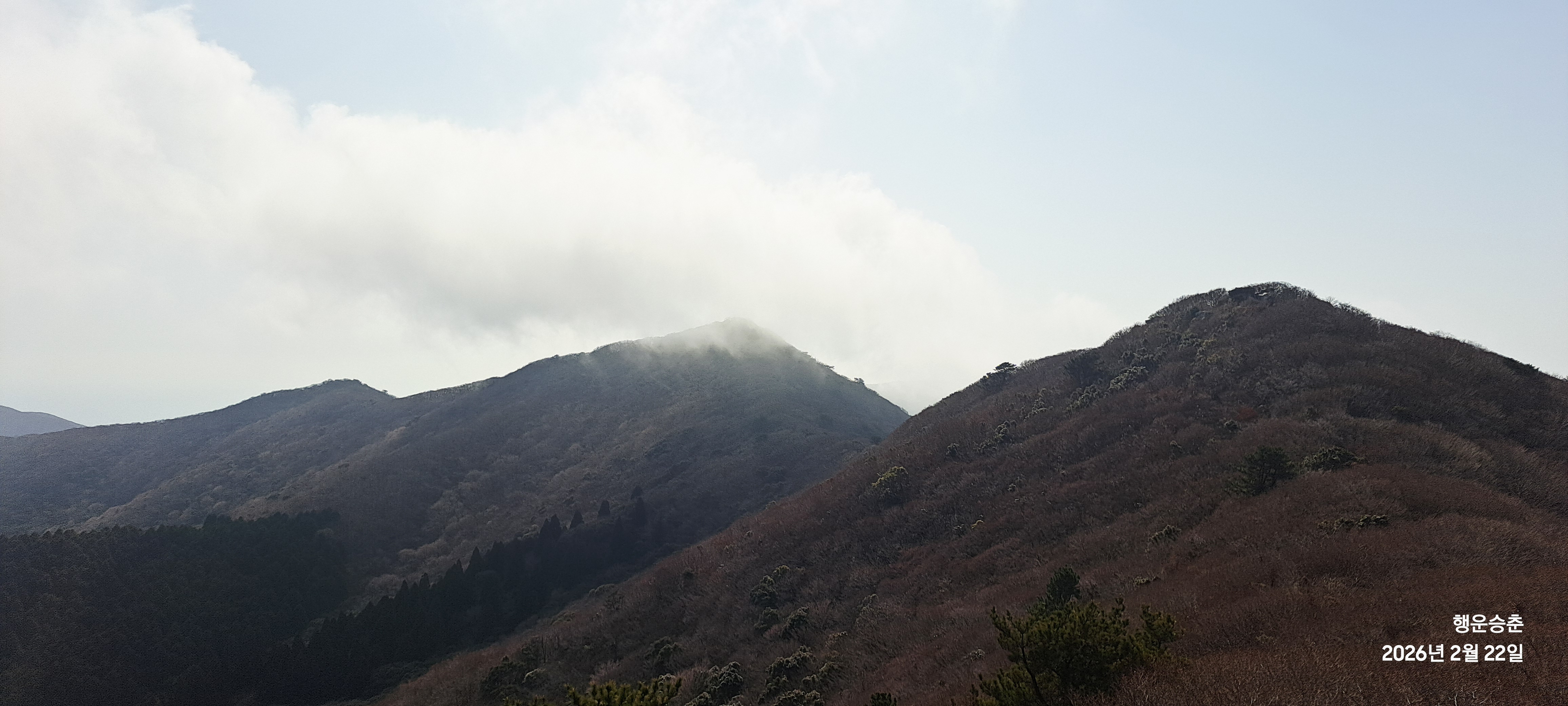 갑자기 기온이 상승해서 해무가 발생하여 산능선을 넘으며 춤을 추기도 했습니다.