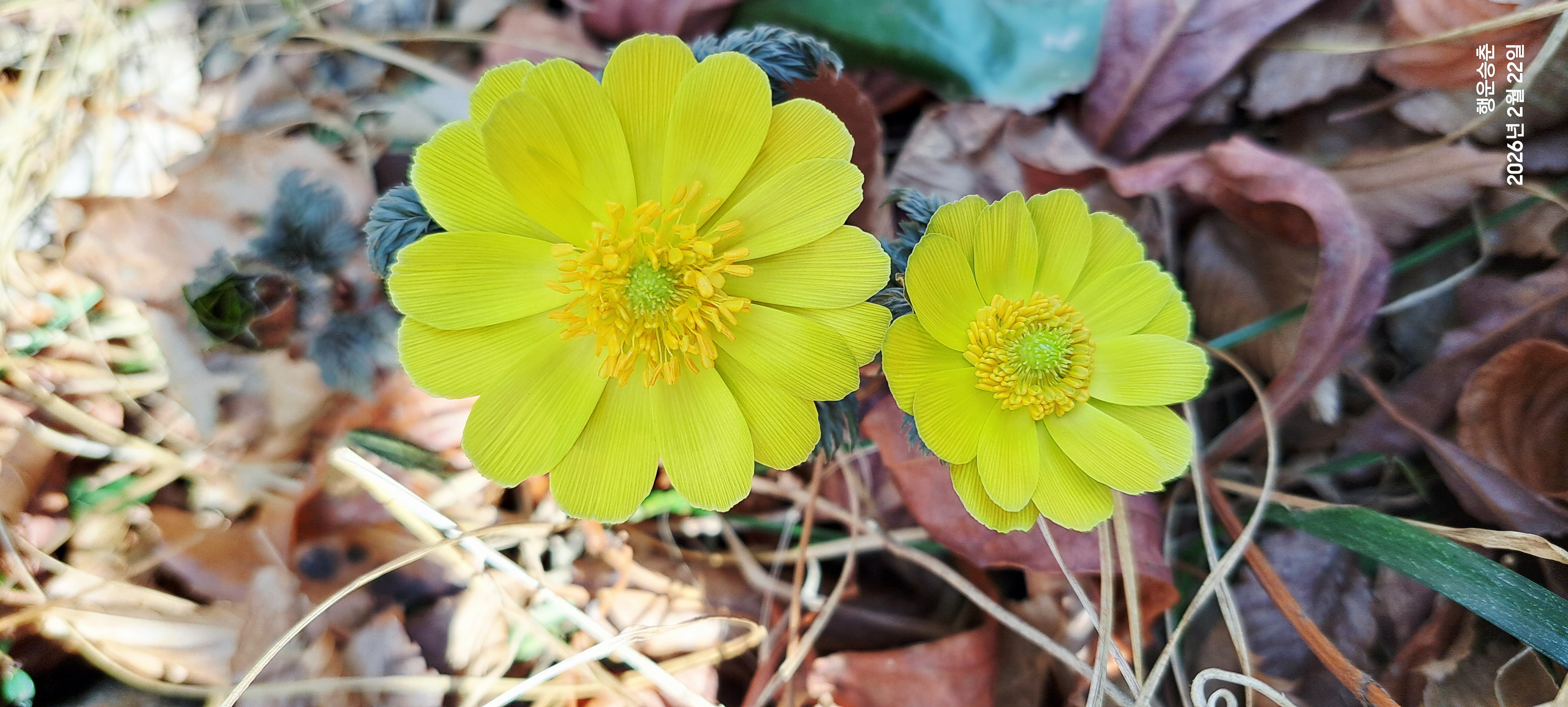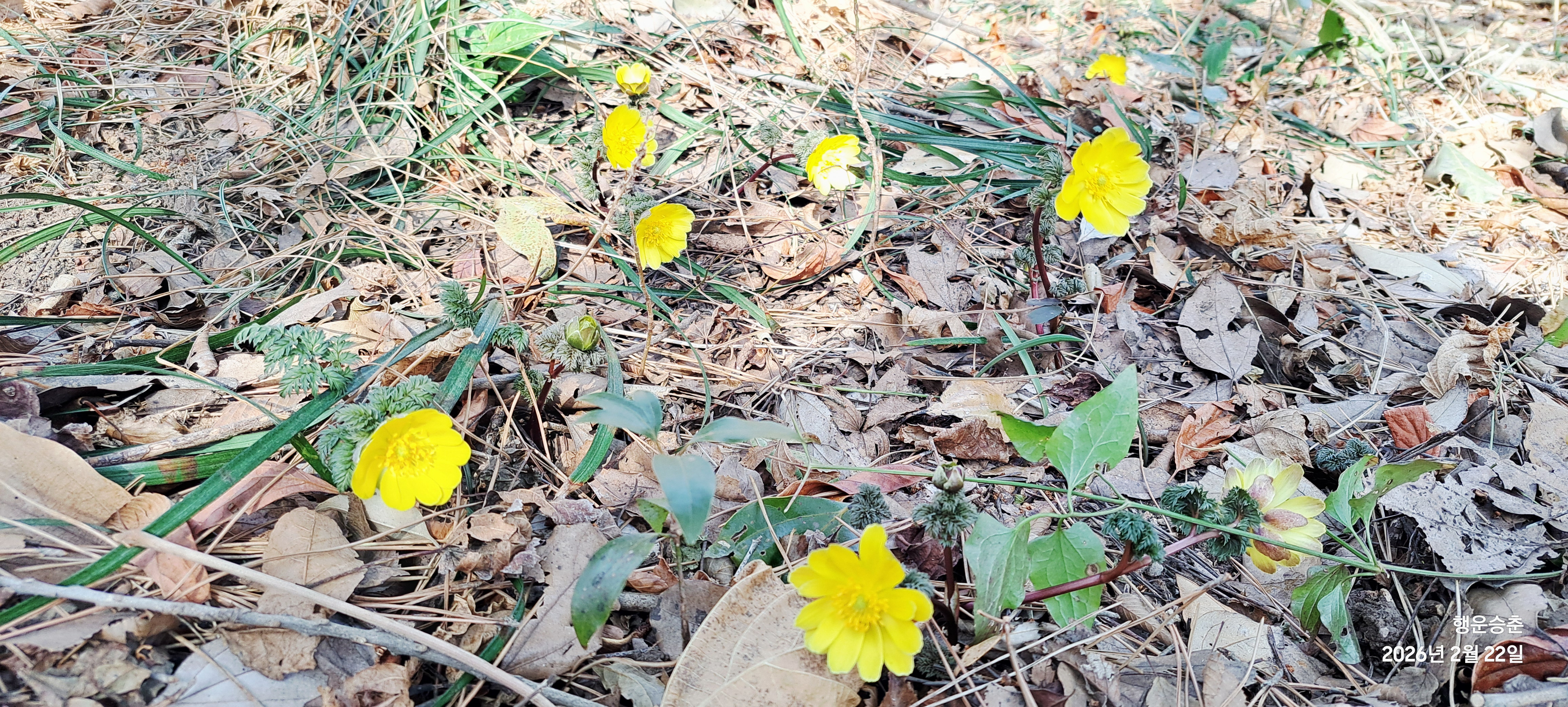 봉래산 전체에 복수초가 만개하여 걸음걸음마다 진노랑 복수초 꽃을 봤습니다.