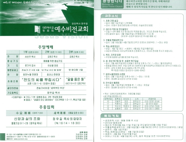 03월 11일 예수비전교회/정우길목사(성북구 장위동)VIP전도축제 태신자작정 예배1부 2부