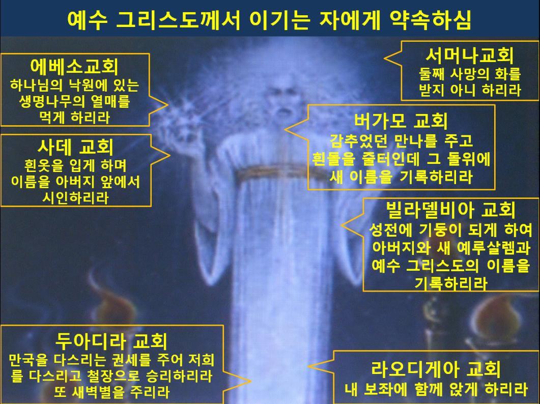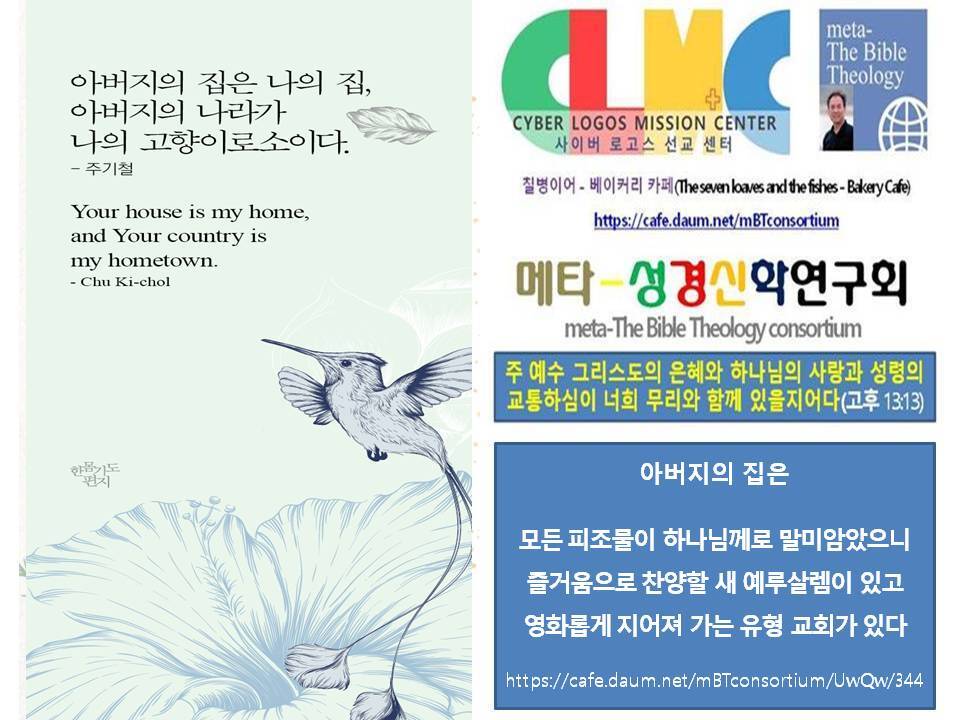 계 21:1 또 내가 새 하늘과 새 땅을 보니 처음 하늘과 처음 땅이 없어졌고 바다도 다시 있지 않더라 2 또 내가 보매 거룩한 성 새 예루살렘이 하나님께로부터 하늘에서 내려오니 그 준비한 것이 신부가 남편을 위하여 단장한 것 같더라 3 내가 들으니 보좌에서 큰 음성이 나서 이르되 보라 하나님의 장막이 사람들과 함께 있으매 하나님이 그들과 함께 계시리니 그들은 하나님의 백성이 되고 하나님은 친히 그들과 함께 계셔서 4 모든 눈물을 그 눈에서 닦아 주시니 다시는 사망이 없고 애통하는 것이나 곡하는 것이나 아픈 것이 다시 있지 아니하리니 처음 것들이 다 지나갔음이러라 5 보좌에 앉으신 이가 이르시되 보라 내가 만물을 새롭게 하노라 하시고 또 이르시되 이 말은 신실하고 참되니 기록하라 하시고 6 또 내게 말씀하시되 이루었도다 나는 알파와 오메가요 처음과 마지막이라 내가 생명수 샘물을 목마른 자에게 값없이 주리니 7 이기는 자는 이것들을 상속으로 받으리라 나는 그의 하나님이 되고 그는 내 아들이 되리라