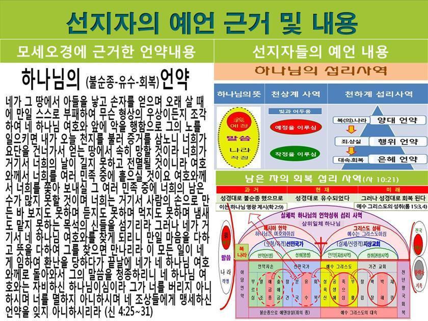 참고 성경 : 신 18:15 네 하나님 여호와께서 너희 가운데 네 형제 중에서 너를 위하여 나와 같은 선지자 하나를 일으키시리니 너희는 그의 말을 들을지니라 ... 18 내가 그들의 형제 중에서 너와 같은 선지자 하나를 그들을 위하여 일으키고 내 말을 그 입에 두리니 내가 그에게 명령하는 것을 그가 무리에게 다 말하리라 19 누구든지 내 이름으로 전하는 내 말을 듣지 아니하는 자는 내게 벌을 받을 것이요 20 만일 어떤 선지자가 내가 전하라고 명령하지 아니한 말을 제 마음대로 내 이름으로 전하든지 다른 신들의 이름으로 말하면 그 선지자는 죽임을 당하리라 하셨느니라 21 네가 마음속으로 이르기를 그 말이 여호와께서 이르신 말씀인지 우리가 어떻게 알리요 하리라 22 만일 선지자가 있어 여호와의 이름으로 말한 일에 증험도 없고 성취함도 없으면 이는 여호와께서 말씀하신 것이 아니요 그 선지자가 제 마음대로 한 말이니 너는 그를 두려워하지 말지니라