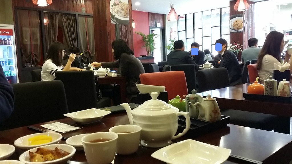 일반 중국집하고는 레벨이 다른 느낌인데요~ 경성대 중국집 맛집 헬로 차이나는 인테리어에 제대로 신경썼다는 느낌이 강했답니다. 먼저 앞 접시와 보리차를 주더군요~