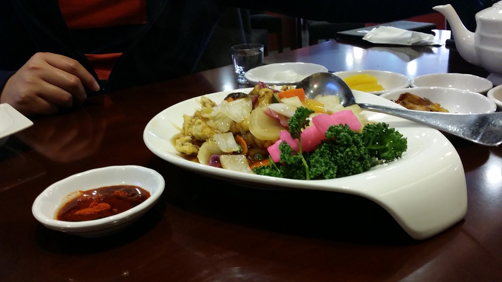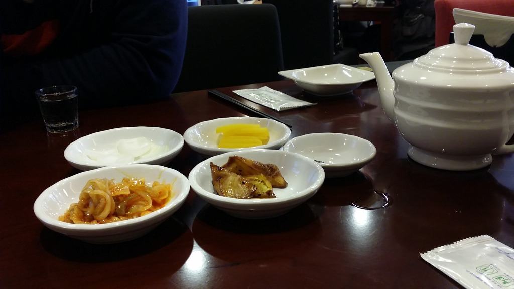 기본 세팅으로 고구마 맛탕과 무우조림, 단무지, 양파를 준답니다. 맛탕과 무우조림은 보통 다른 중국집은 안 나오는데, 세팅을 해 주시는 고급화 전략이 아닐까 싶네요^^