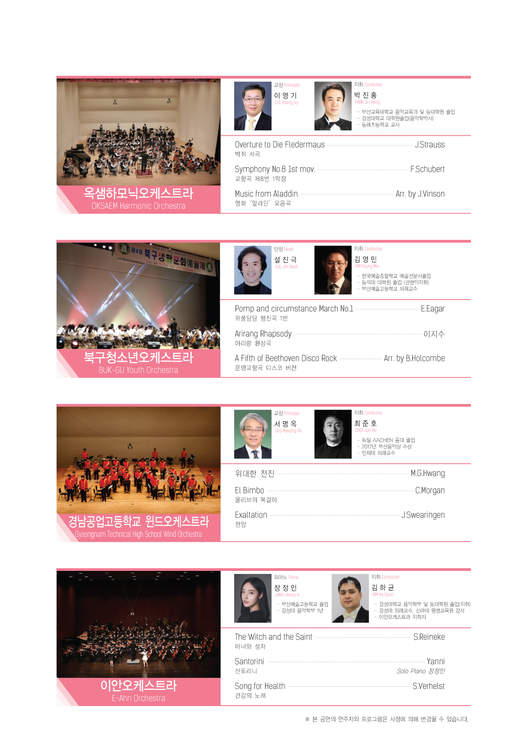 『2020 제11회 부산마루국제음악제』 -부산문화회관 대극장 작성자오학동|작성시간20.11.02|조회수164 목록 댓글 0 글자크기 작게가 글자크기 크게가 2020. 11. 15(일). 오후12시『2020 제11회 부산마루국제음악제』 드림프로젝트 콘서트부산문화회관 대극장전석초대 경남공업고등학교 윈드오케스트라지도교사 : 정두환지 휘 : 최준호 다음검색 현재 게시글 추가 기능 열기 북마크 신고 센터로 신고 댓글 댓글 0 댓글쓰기 답글쓰기 댓글 리스트
