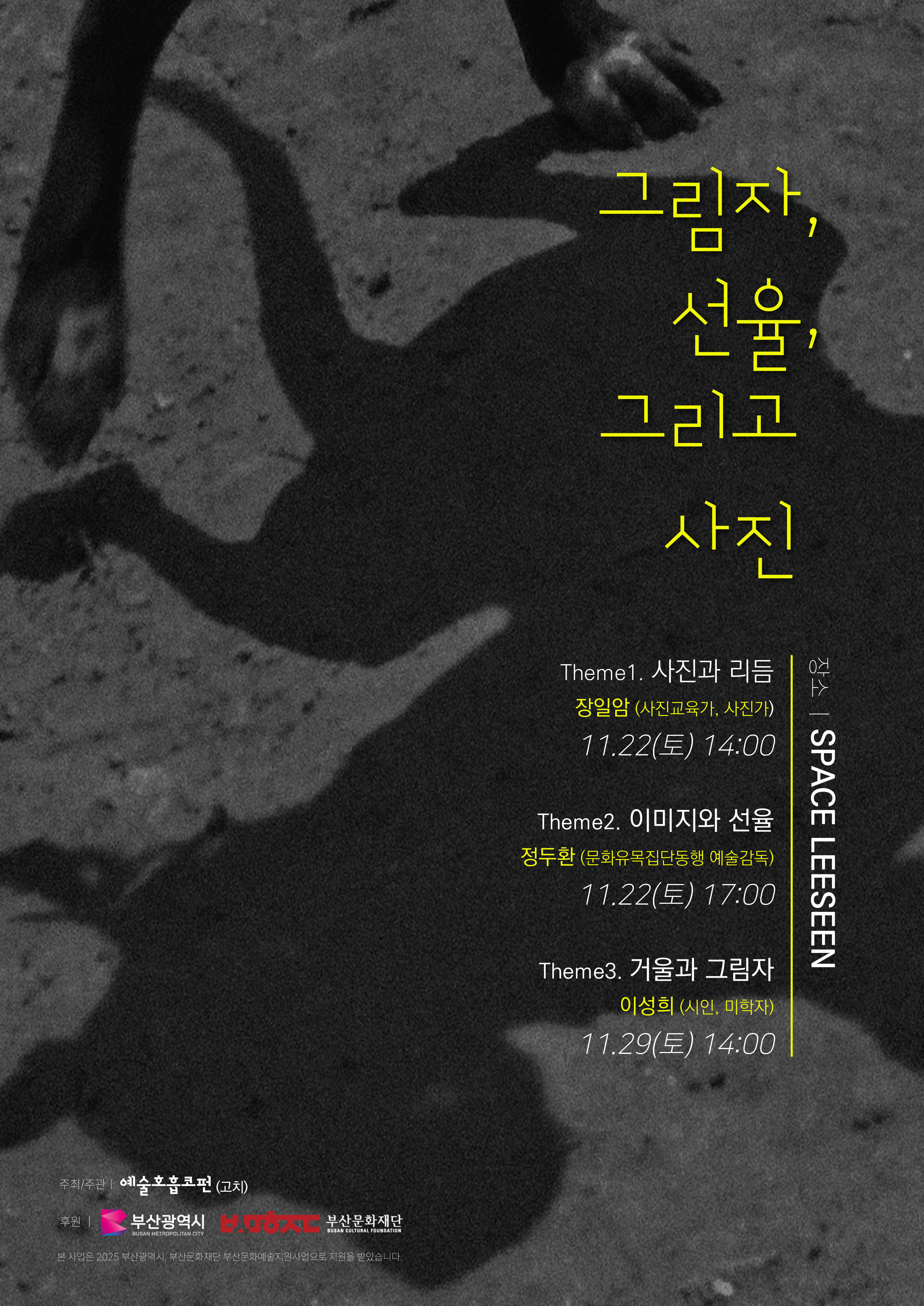 그림자, 선율, 그리고 사진 [스페이스 이신] 작성자오학동|작성시간25.11.18|조회수20 목록 댓글 0 글자크기 작게가 글자크기 크게가 2025.11.22(토) 17:00그림자, 선율, 그리고 사진[스페이스 이신] Theme2. 이미지와 선율 정두환(문화유목집단동행 예술감독) 강연 https://naver.me/GWeQnRwS네이버지도스페이스 이신map.naver.com 다음검색 현재 게시글 추가 기능 열기 북마크 신고 센터로 신고 댓글 댓글 0 댓글쓰기 답글쓰기 댓글 리스트