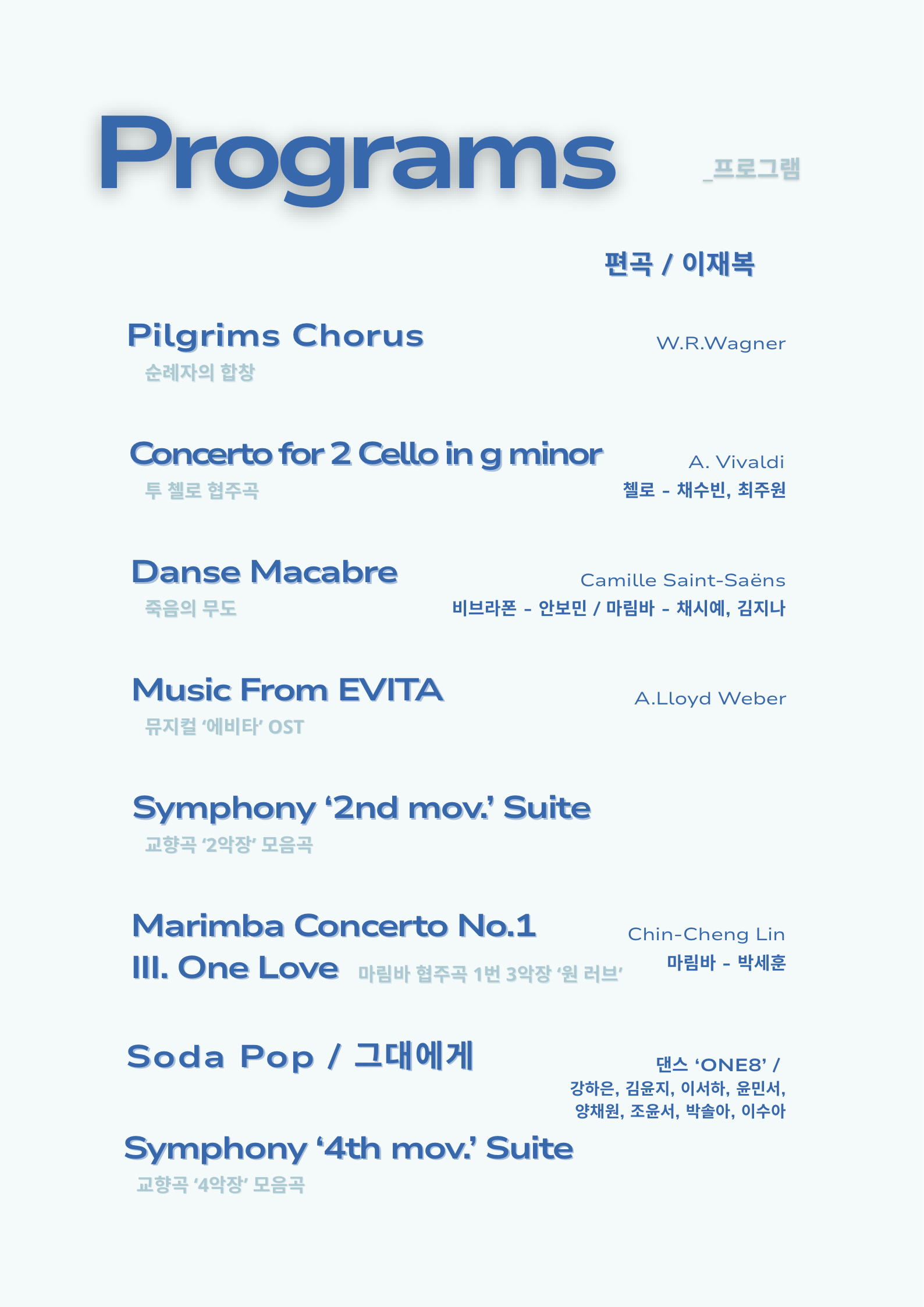 윤슬타악기앙상블 제6회 정기연주회 [영화의전당] 작성자오학동|작성시간26.02.19|조회수19 목록 댓글 0 글자크기 작게가 글자크기 크게가 2026.03.07(토) 17:00윤슬타악기앙상블 제6회 정기연주회영화의전당 하늘연극장 다음검색 현재 게시글 추가 기능 열기 북마크 신고 센터로 신고 댓글 댓글 0 댓글쓰기 답글쓰기 댓글 리스트