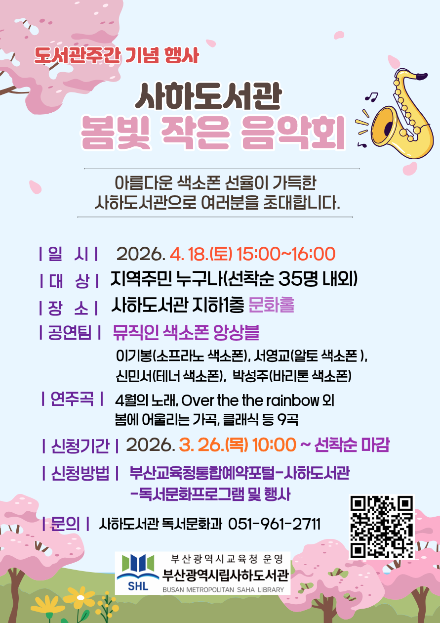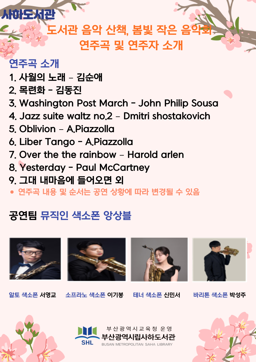 사하도서관 음악 산책, <봄빛 작은 음악회>