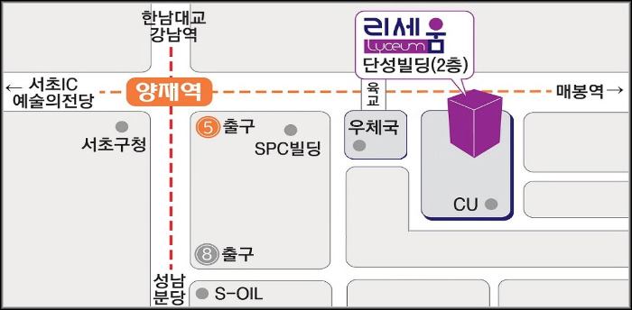 오시는 길 : 양재역 5번 출구로 나오셔서 250m 직진하세요