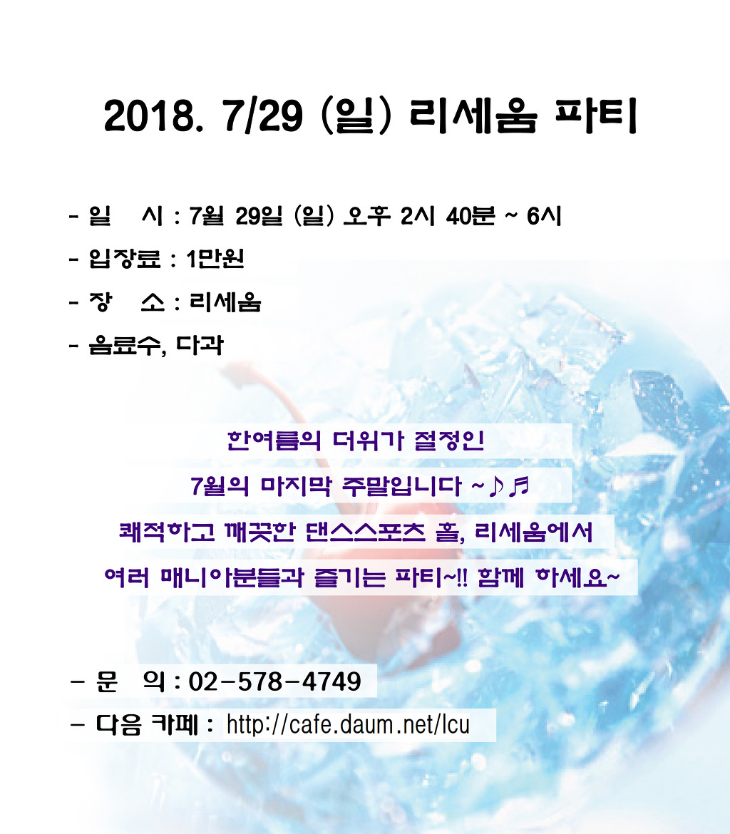 7/29(일) 리세움 파티 바로가기 => http://cafe.daum.net/lcu/cQQP/454