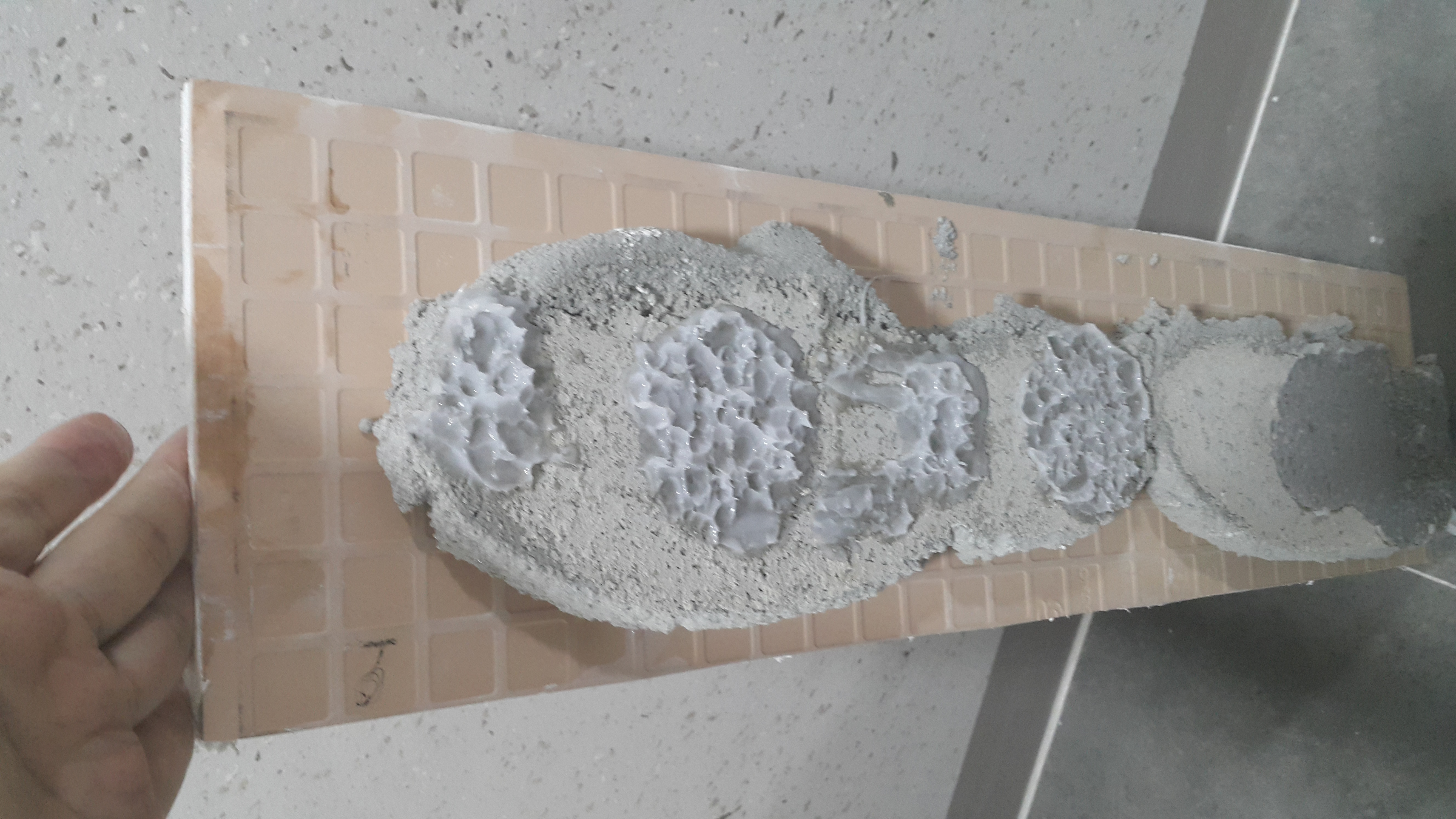 예전에 AS 받은 공용 욕실 타일 AS 사진입니다. 오늘 작업은 기존 타일 해체시 밥(?)이 거의 떨어져나가서 이렇게 하진 않고, 밥(?)을 그냥 전체적으로 다 발랐다고 하더군요. 밑에 사진과 같이 기존에 있던 밥(?)을 활용하여 실리콘을 바르는 방법도 있다고 하는데, AS 받은 곳이 텅텅 비어 있는 소리가 들리는 곳이 있어서 작업자께 물어보니, 추후 텅빈 소리가 나는 타일이 금이 갈지 깨질지는 복불복이라고 텅 빈 소리가 난다고 해서 타일이 깨지지는 않는다고 하며, 인테리어 줄눈을 하면 접착력이 있어서 안한 것보다는 더 잘 붙어 있다고 합니다.