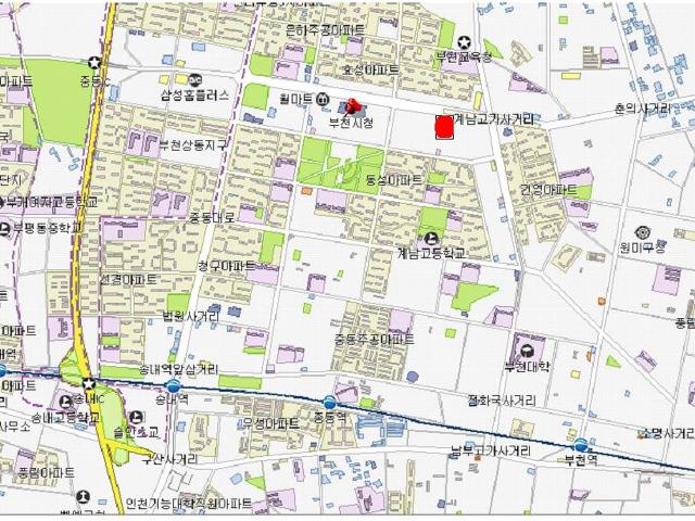 우측으로는 GS백화점이 있도 좌측으로는 부천시청이 있으며 내년에 7호선 연장선 개통을 두고 있음